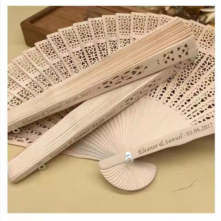 Những chiếc quạt này được dùng làm quà tặng sang trọng cho các bữa tiệc, đồ lưu niệm trong đám cưới hoặc vật phẩm quảng cáo có thương hiệu. Dù được đặt trên bàn ăn hay được tặng làm quà lưu niệm, chúng đều tạo thêm nét quyến rũ đồng thời quảng bá thông điệp của bạn một cách đáng nhớ.