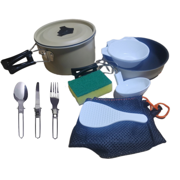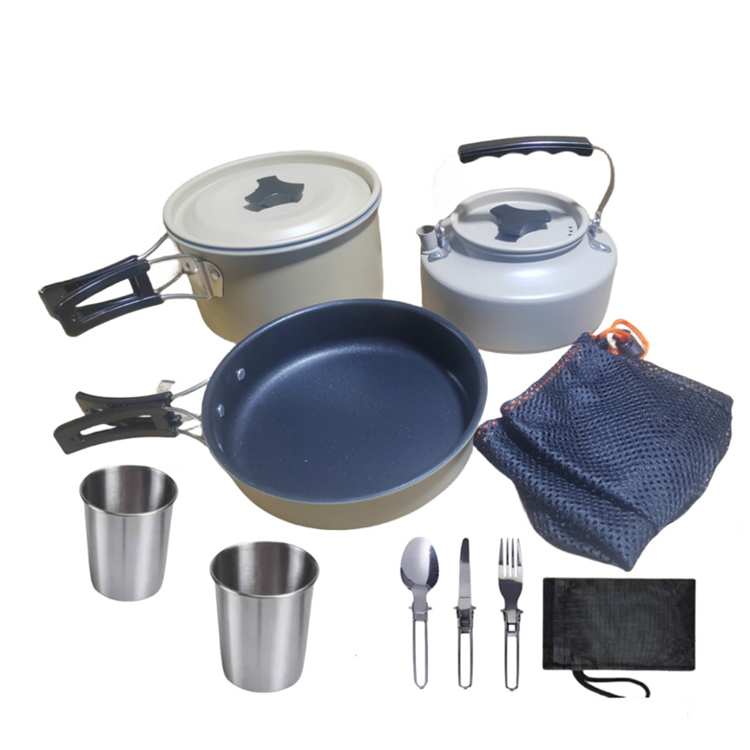 Bộ dụng cụ nấu nướng cắm trại với bộ nồi nấu ăn di động ấm đun nước