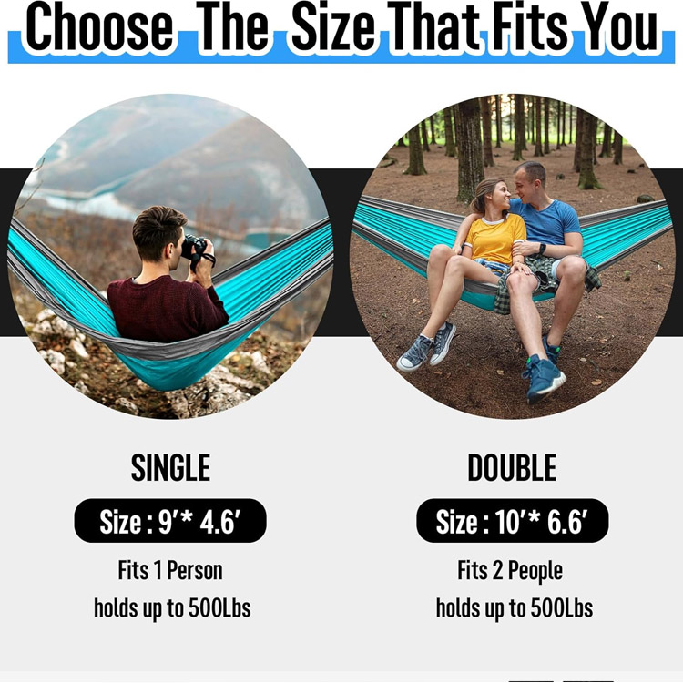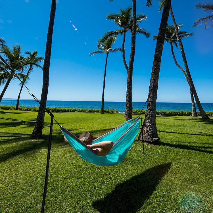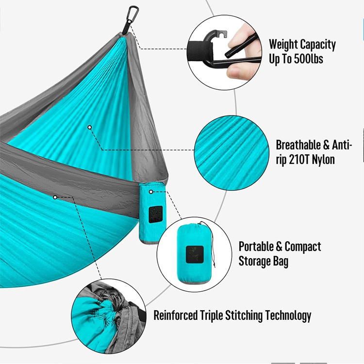 Võng cắm trại Võng di động đôi và đơn. Hệ thống thư giãn đa năng tối ưu của bạn cho những cuộc phiêu lưu ngoài trời. Chiếc võng cắm trại này phù hợp cho cả người dùng đôi và người dùng đơn với thiết kế thích ứng. Hoàn thiện với dây đai cây chuyên nghiệp, chiếc võng dù nylon nhẹ này mang lại sự thoải mái và tính di động tối đa.