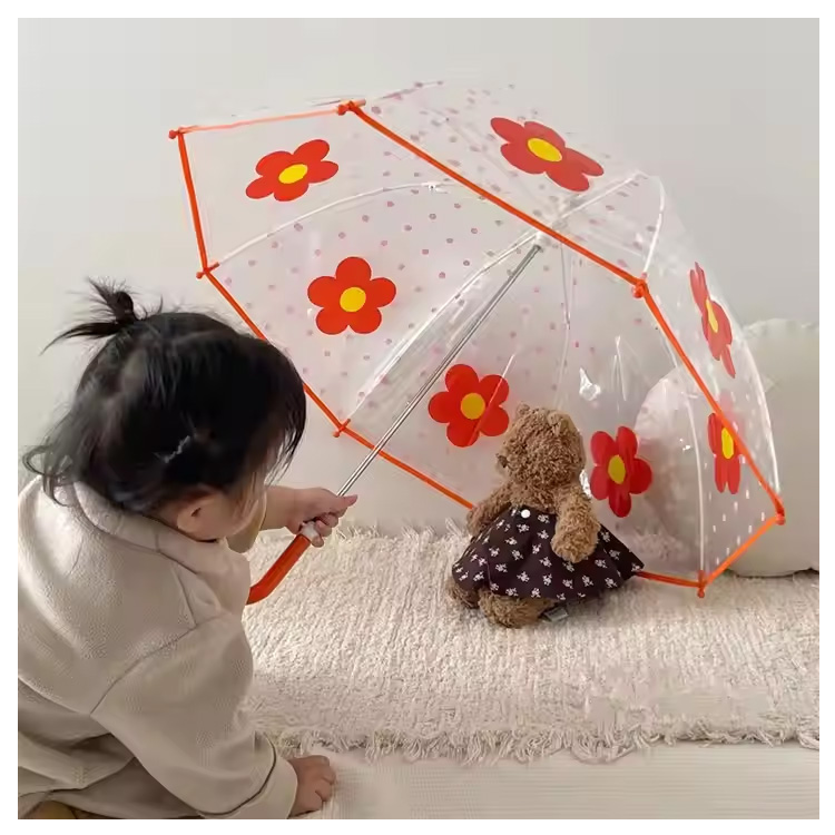 Logo tùy chỉnh Áo mưa phản quang ô dù thẳng cho trẻ em