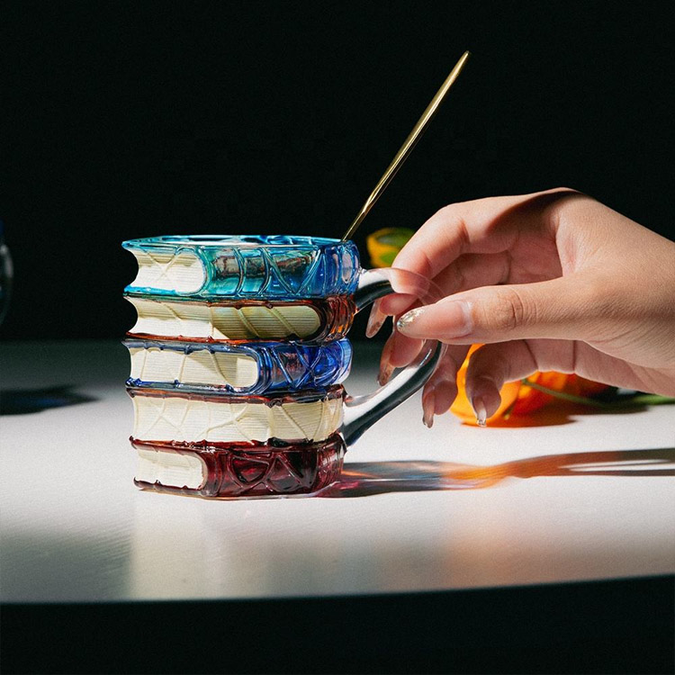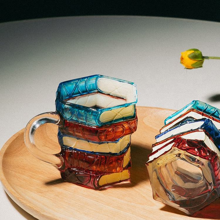 Cốc cà phê thủy tinh vẽ tay Cốc cà phê sách vẽ 3D. Cốc cà phê thủy tinh sách vẽ tay có thiết kế sách xếp chồng 3D độc đáo, hoàn hảo cho những người yêu sách và những người đam mê cà phê. Kết cấu kính bền bỉ với màu sắc sống động, là món quà lý tưởng hoặc vật trang trí cho gia đình và văn phòng.