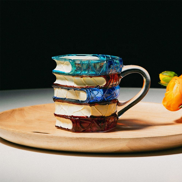 Tách cà phê sáng tạo này có thiết kế 3D tuyệt đẹp gồm những cuốn sách xếp chồng lên nhau, khiến nó trở thành sự kết hợp hoàn hảo giữa tính nghệ thuật và chức năng. Từng chi tiết, từ những gáy sách có họa tiết cho đến những trang sách chân thực, đều được chế tác tỉ mỉ để làm hài lòng cả những người yêu sách cũng như những nhà sưu tập.