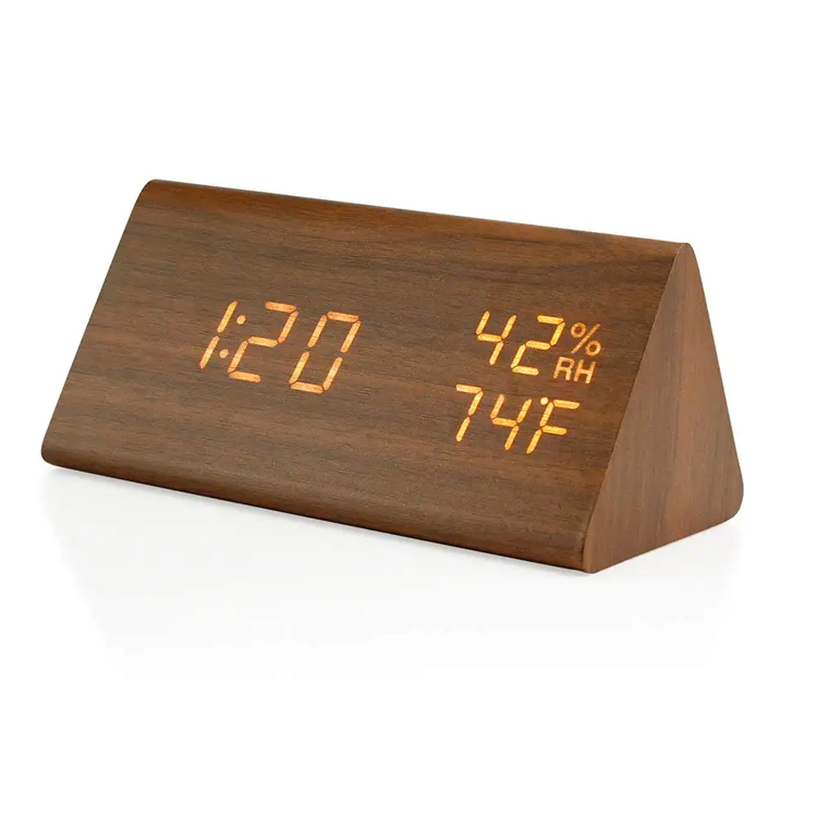 Đồng hồ báo thức bàn đèn LED kỹ thuật số bằng gỗ này có thiết kế lập phương hiện đại, bóng bẩy, bổ sung cho bất kỳ trang trí nhà hoặc không gian văn phòng. Thẩm mỹ tối giản của nó mang lại một chút thanh lịch trong khi còn lại chức năng. Kết thúc bằng gỗ làm tăng thêm sự ấm áp và tinh tế cho bàn làm việc của bạn, làm cho nó trở thành sự pha trộn hoàn hảo của phong cách và tính thực tế.