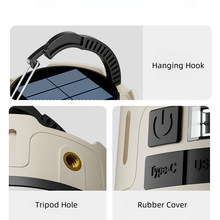 Đèn lều LED cắm trại ngoài trời chất lượng cao của nhà sản xuất. Hãy làm sáng tỏ cuộc phiêu lưu của bạn với đèn cắm trại năng lượng mặt trời ngoài trời mẫu mới 2025 này. Với đèn LED chất lượng cao, sạc bằng năng lượng mặt trời và nhiều chế độ chiếu sáng, nó hoàn hảo cho lều, đi bộ đường dài, trường hợp khẩn cấp và hoạt động ngoài trời—Nguồn sáng đáng tin cậy của bạn mọi lúc, mọi nơi.