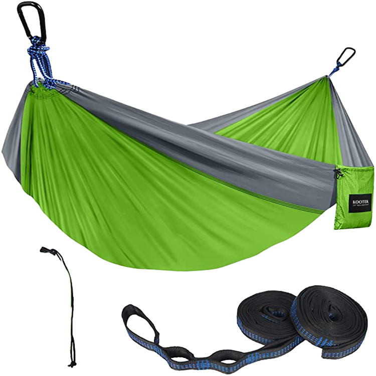 Cắm trại ngoài trời Võng dù vải cho một người. Lối thoát solo hoàn hảo của bạn cho những cuộc phiêu lưu ngoài trời. Chiếc võng cắm trại dành cho một người này có kết cấu bằng vải Taffeta bền bỉ với móc treo màu tối và dây đai cây có thể điều chỉnh. Được thiết kế để mang lại sự thoải mái tối đa và thiết lập dễ dàng, đây là người bạn đồng hành lý tưởng của bạn để thư giãn nơi hoang dã.