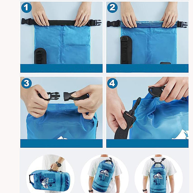 Roll Top Portable Dễ dàng sử dụng Mang theo túi khô trong suốt. Giải pháp chống nước sáng tạo của bạn cho những chuyến phiêu lưu ngoài trời. Túi khô thiết kế mới này có nắp cuộn trong suốt để dễ nhận biết. Với nhiều tùy chọn kích thước và thiết kế mang theo di động, nó hoàn hảo cho việc đi bộ đường dài và các môi trường ẩm ướt khác nhau.