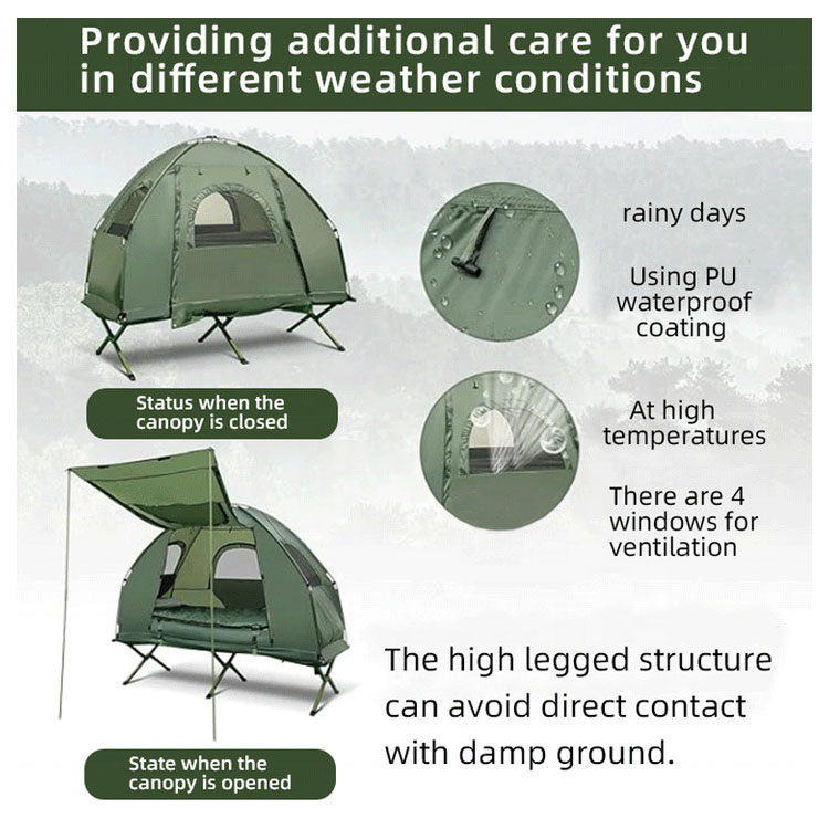 Có bệ ngủ tích hợp trên cao, kết hợp khả năng chống ẩm với sự thoải mái nâng cao, giúp tách bạn khỏi mặt đất ẩm ướt một cách hiệu quả và cải thiện khả năng cách nhiệt.