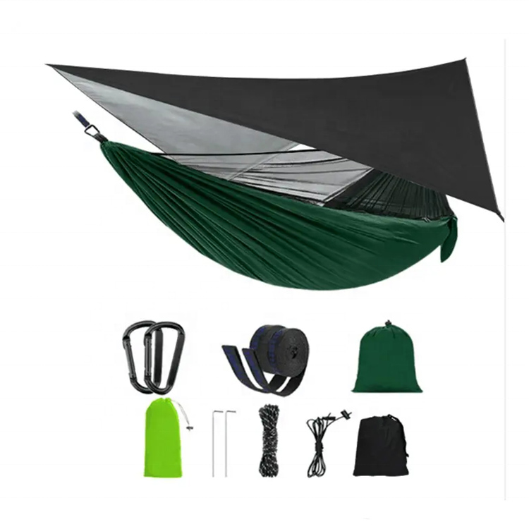 Võng đu siêu nhẹ Cắm trại Lưới chống muỗi Mưa bay. Giải pháp võng tối ưu cho mọi thời tiết của bạn cho những chuyến phiêu lưu ngoài trời. Hệ thống siêu nhẹ này kết hợp một chiếc võng đu thoải mái với màn chống muỗi tích hợp và tấm chắn mưa bảo vệ. Hoàn hảo cho việc cắm trại, nó đảm bảo sự thư giãn không có côn trùng và sự thoải mái khô ráo trong nhiều điều kiện khác nhau.